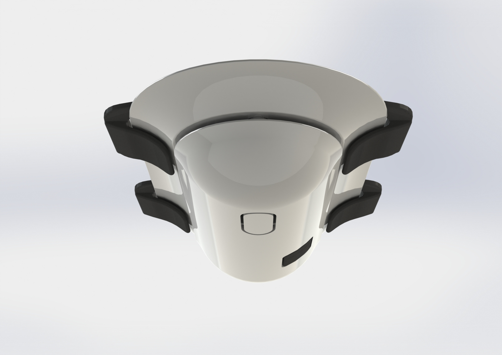 For this project we had to accommodate an existing smoke alarm circuit into a new body. This meant that a full scale prototype of the smoke alarm was needed in order to test fitting. The model seen below was made entirely using 3D printing.